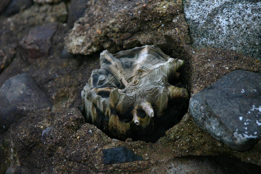 | The stump of a telegraph pole on Clonque causeway. This has weathered down a lot since I first photographed it in 2000. |