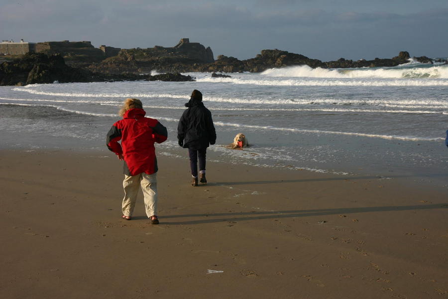 | Jane Karen and Boogie on Bray beach. |
